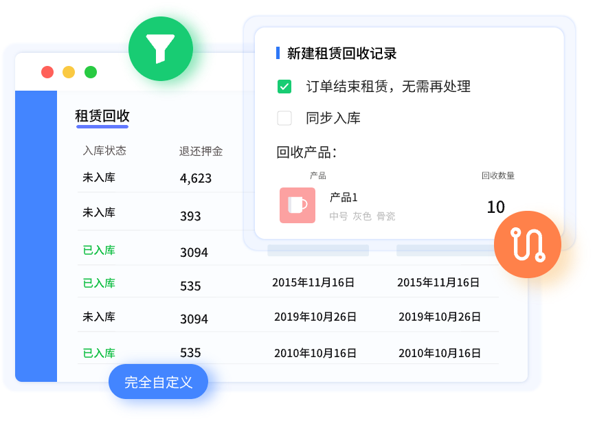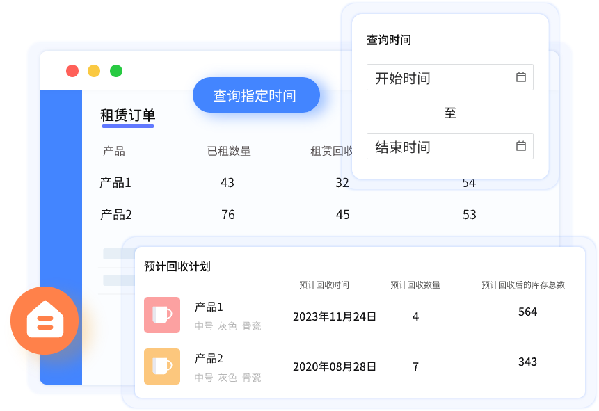 在库数量、已租数量、查询指定时间段预计回收数量,清晰明了