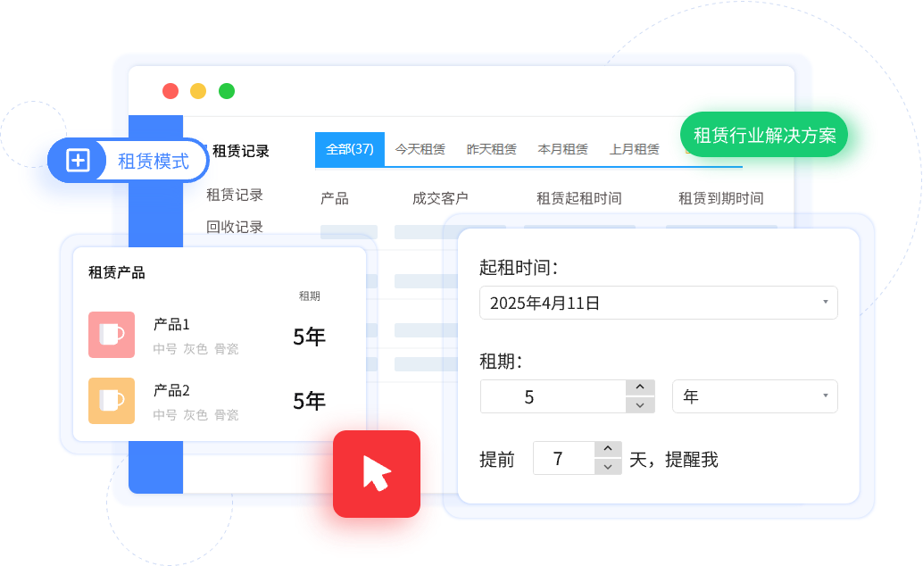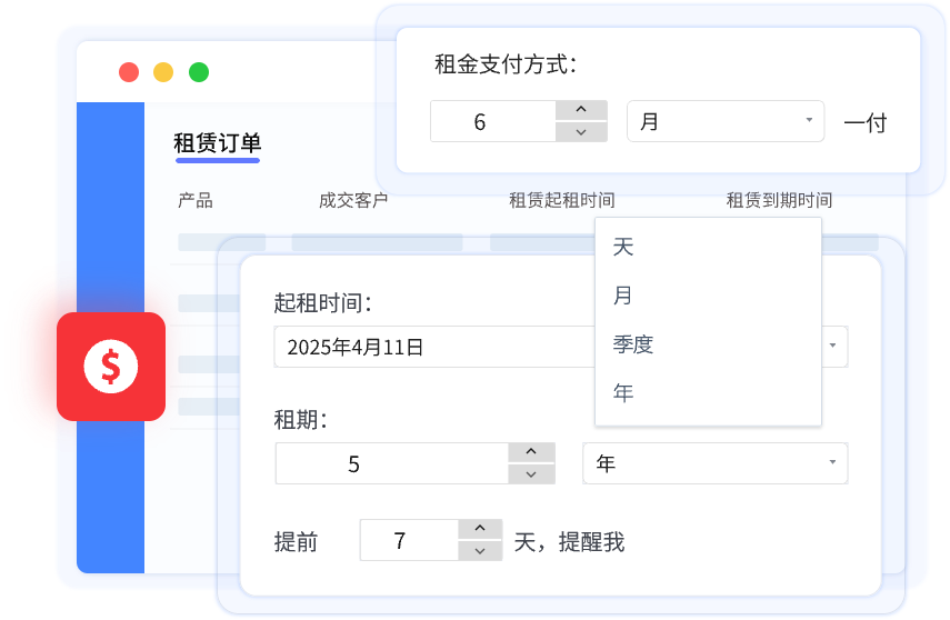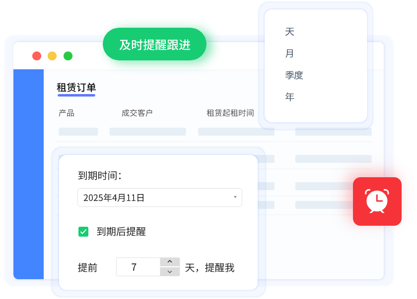 自由设备提醒条件,提醒时间,到期的租赁订单及时提醒跟进