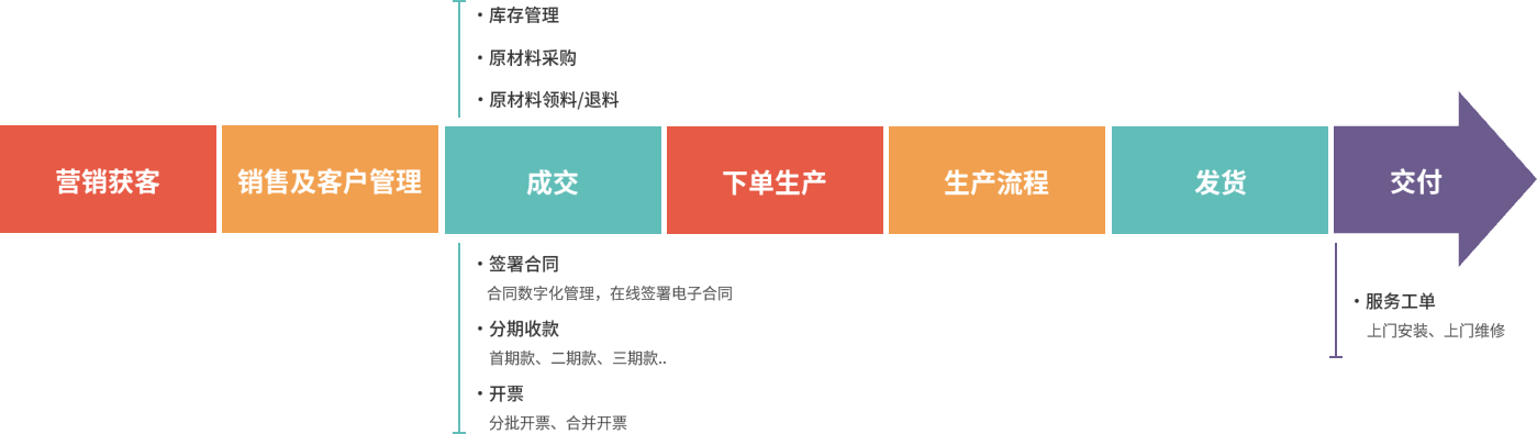 与CRM、进销存深度融合,从订单到生产到仓库到发货,无缝打通, 完美衔接,